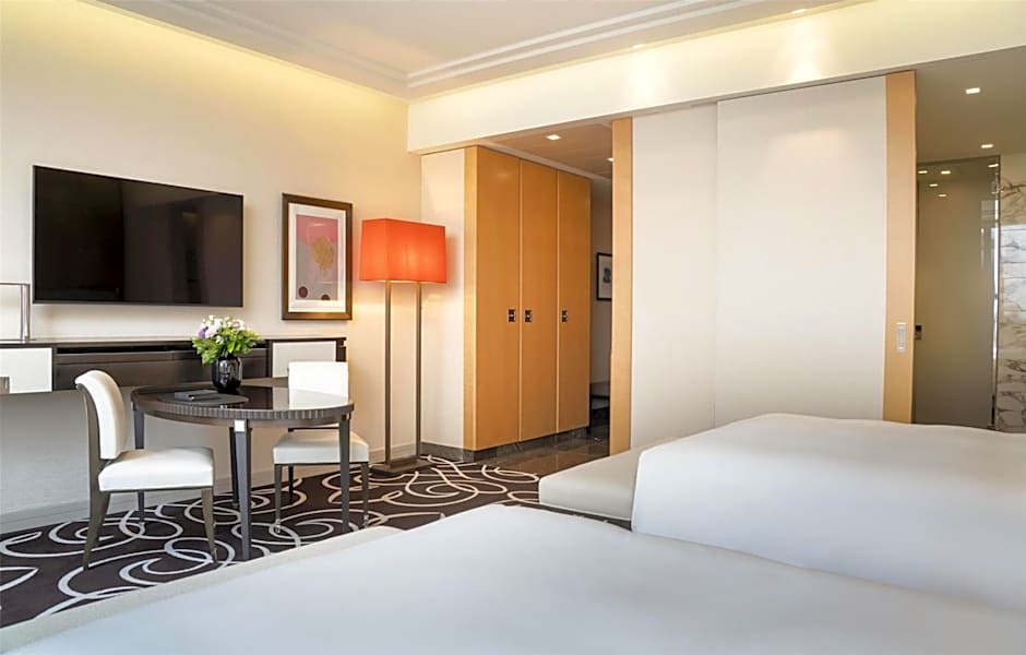 Enjoy the first-class comfort of this 42sq. m./452sq. ft. Deluxe room adjoining an equally spacious Twin Deluxe room. This elegantly designed guest room features a Nespresso coffee machine, TVs and may include a chaise lounge as well as dressing table.
